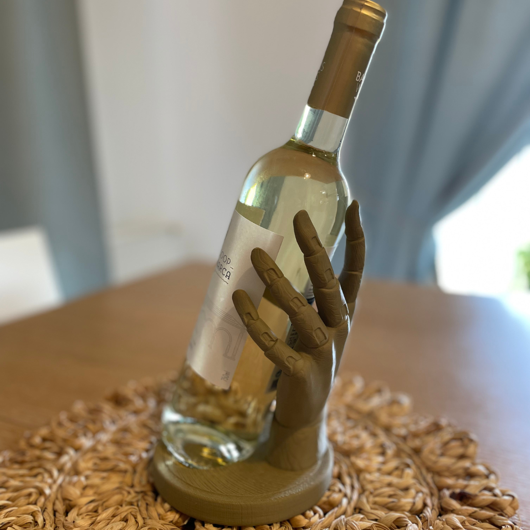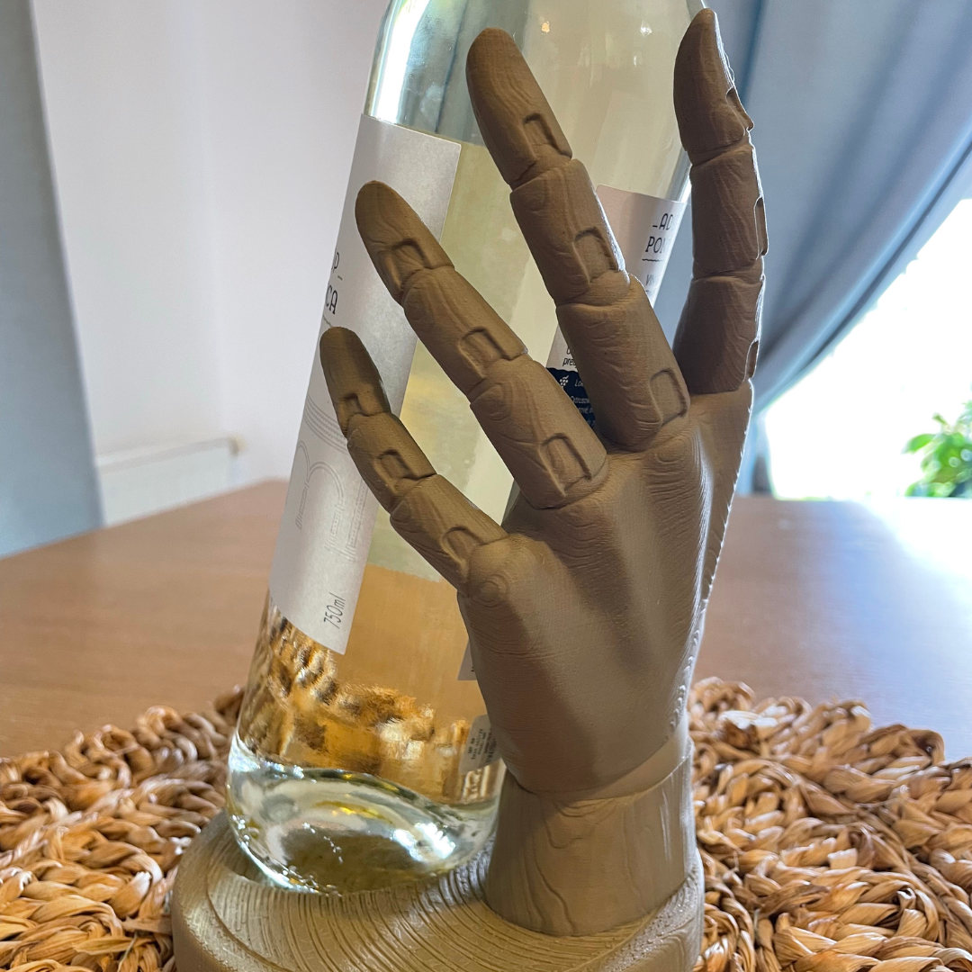 3D-Weinhalter in Handform aus holzähnlichem Filament
