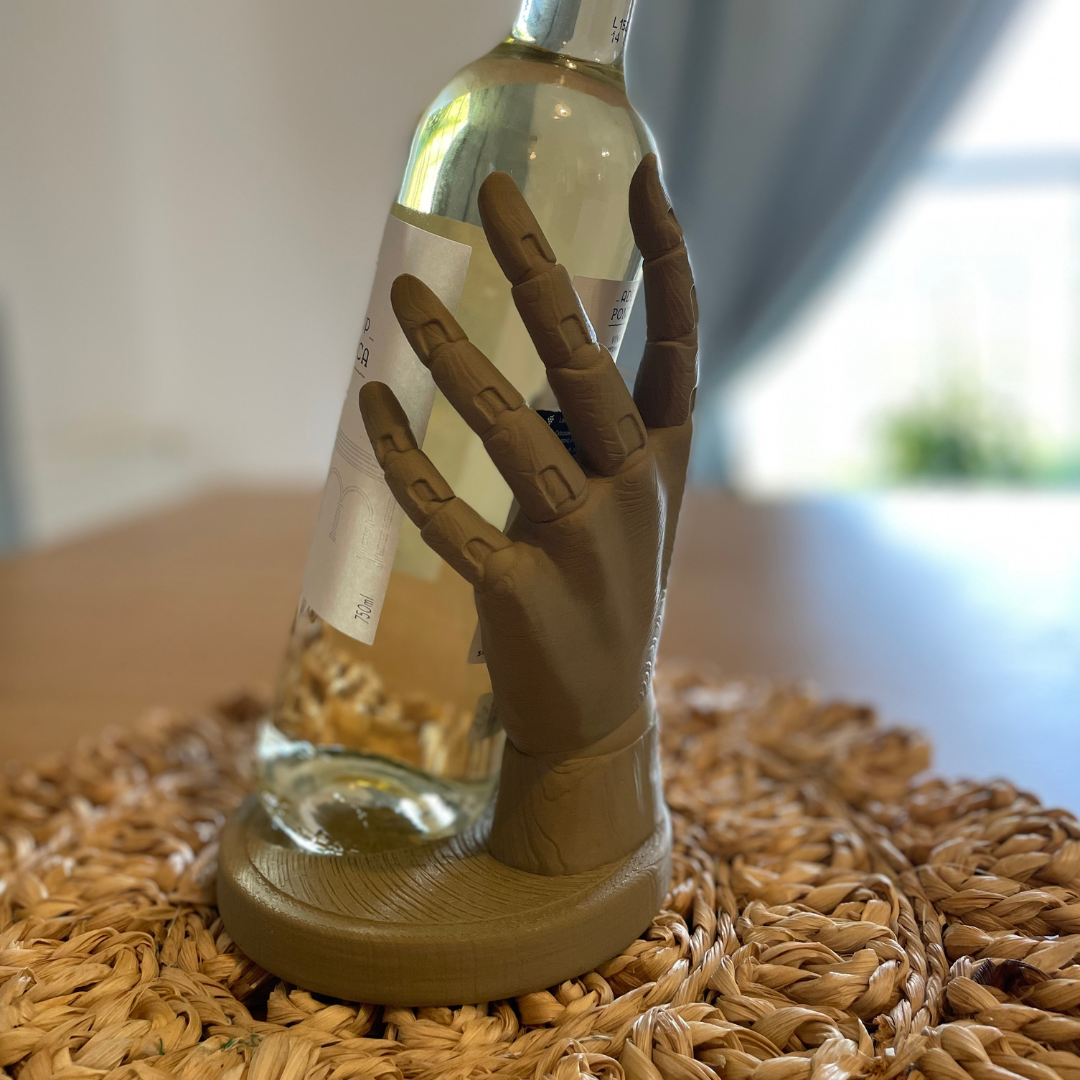 Überraschen Sie Ihre Gäste mit einer einzigartigen Art, Wein zu präsentieren! Dieser außergewöhnliche Halter in Form einer Hand wurde präzise im 3D-Druckverfahren hergestellt. Das verwendete holzähnliche Filament imitiert die Struktur von echtem Holz und verbindet Natürlichkeit mit moderner Leichtigkeit.