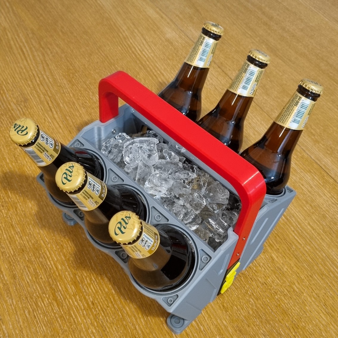 Dieser Bierträger vereint Funktionalität, Stabilität und außergewöhnliches Design. Er bietet Platz für bis zu sechs 0,5-Liter-Bierflaschen und verfügt über eine integrierte Eiskammer, die das Getränk über viele Stunden perfekt gekühlt hält. Einfach Eis einfüllen – die Kälte erledigt den Rest, ganz ohne zusätzliche Kühlboxen oder Kühlschränke.