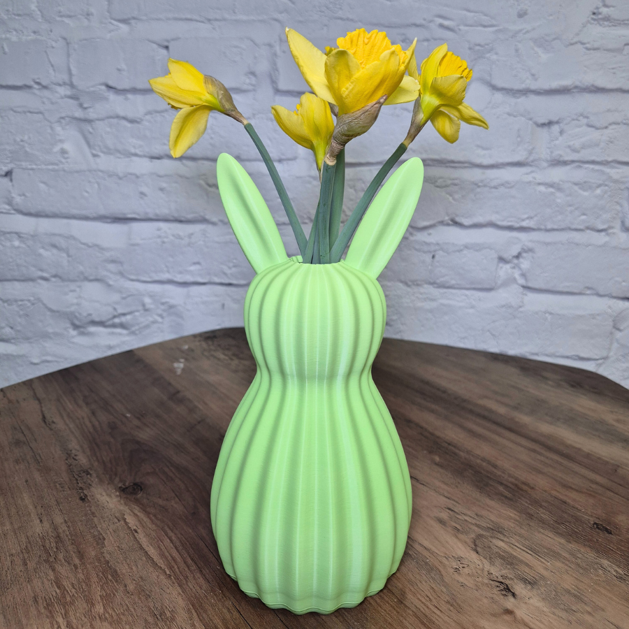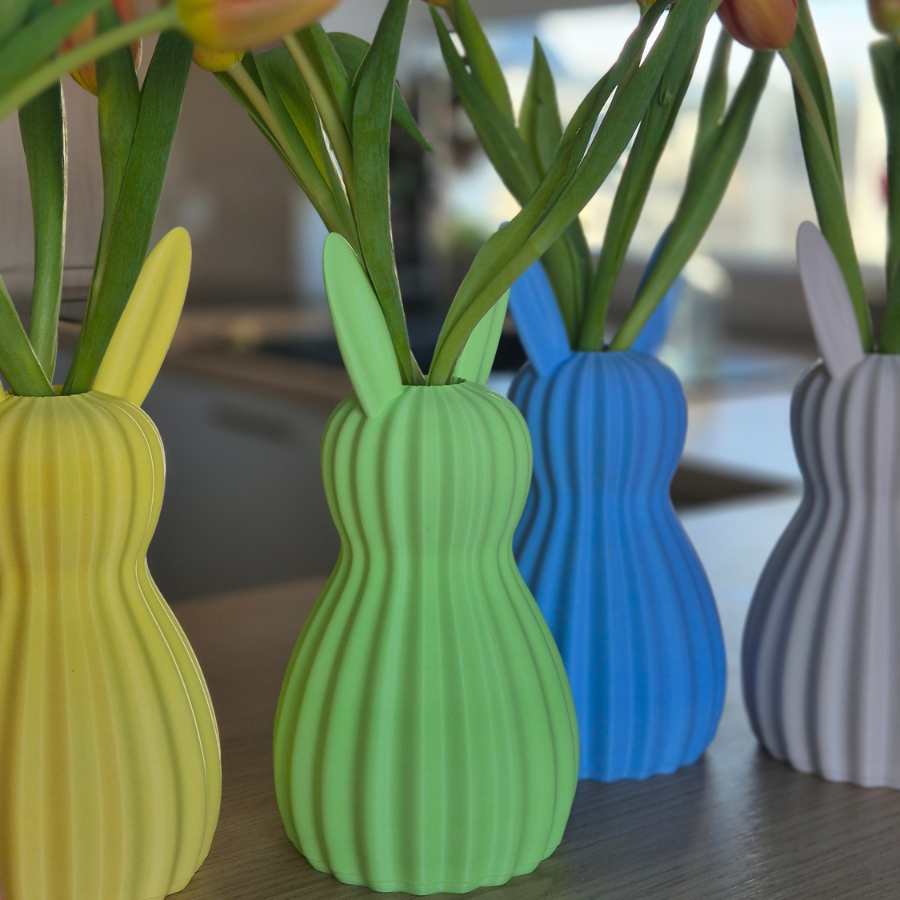 Die grüne Pastell-Hasenvase mit 24 cm Höhe ist eine besondere Dekoration, die Frische und frühlingshafte Leichtigkeit in Ihr Zuhause bringt. Die schlanke, leicht gewellte Form in Kombination mit den markanten Hasenohren verleiht ihr einen subtilen, aber dennoch ausdrucksstarken Charakter. Sie zieht die Blicke auf sich und fügt sich gleichzeitig harmonisch in moderne sowie minimalistische Einrichtungen ein.