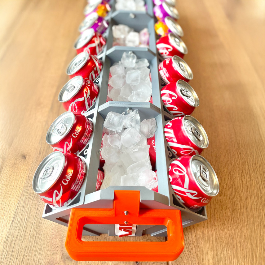 Im Zentrum befindet sich ein spezielles Fach für Eiswürfel – so bleiben deine Getränke auch an heißen Tagen angenehm kühl. Die ergonomischen und stabilen Griffe sorgen für hohen Tragekomfort, während die präzise 3D-gedruckte Konstruktion Langlebigkeit und einen einzigartigen Look garantiert.